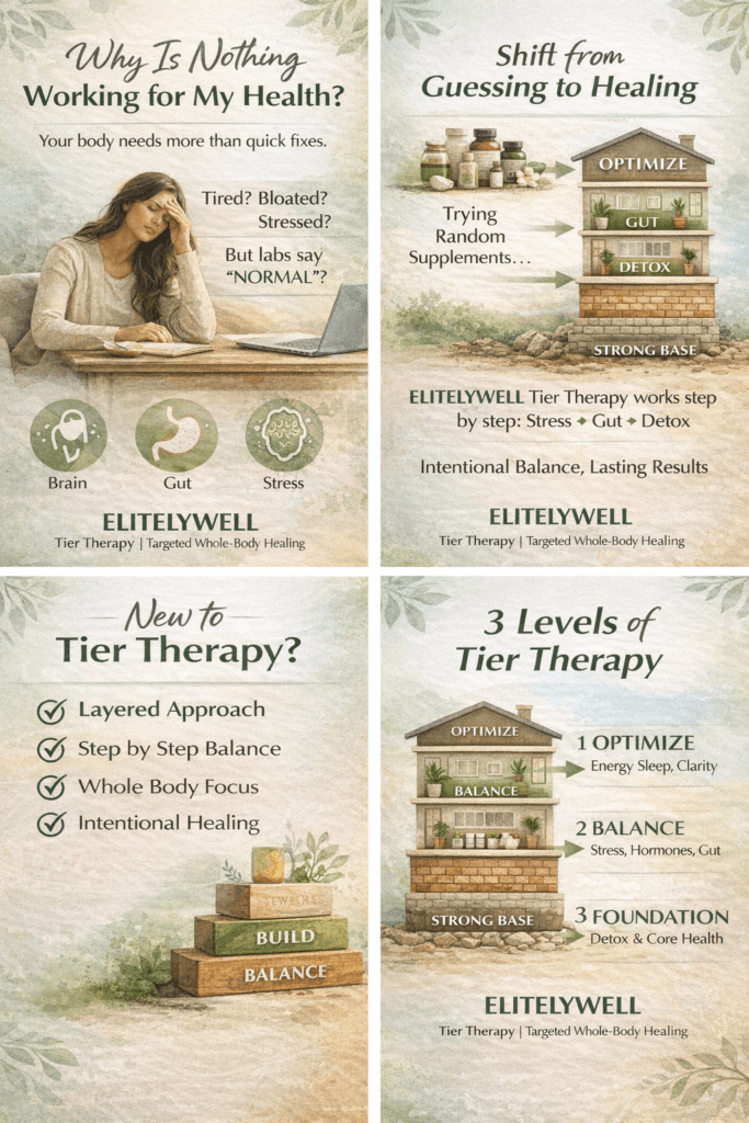Many people feel frustrated after trying countless wellness products with little success. The problem isn’t effort—it’s approach. ELITELYWELL recognizes that the body functions as a system, and true healing starts with a strong foundation. Tier Therapy prioritizes strengthening core systems first, creating balance before deeper optimization, and helping the body respond more effectively to ongoing wellness support.