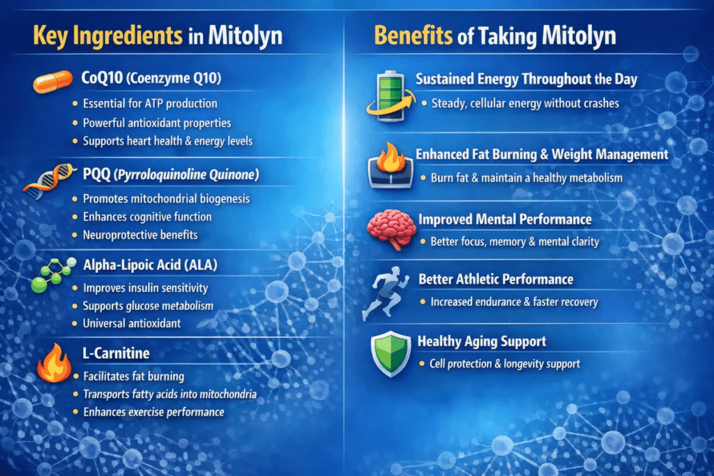 Mitolyn is an advanced nutritional supplement designed to support mitochondrial health, enhance energy production, and promote efficient fat burning. By targeting the cellular powerhouses of your body—the mitochondria—Mitolyn helps optimize your body’s natural energy-producing processes while supporting healthy weight management and overall vitality.